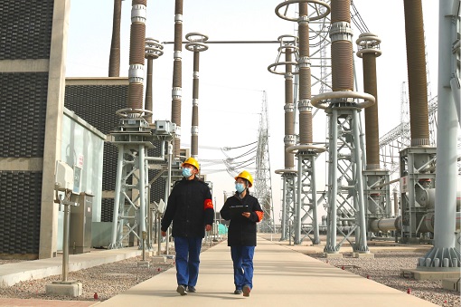 國網(wǎng)河北電力員工在1000千伏特高壓雄安站開展特巡。