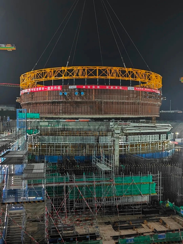 本網(wǎng)訊 2022年5月15日4時18分,海南昌江核電廠4號機(jī)組核島反應(yīng)堆廠房鋼襯里模塊一吊裝就位,此次吊裝成功將為4號機(jī)組反應(yīng)堆廠房內(nèi)部結(jié)構(gòu)施工關(guān)鍵路徑順利推進(jìn)打下堅(jiān)實(shí)基礎(chǔ)。