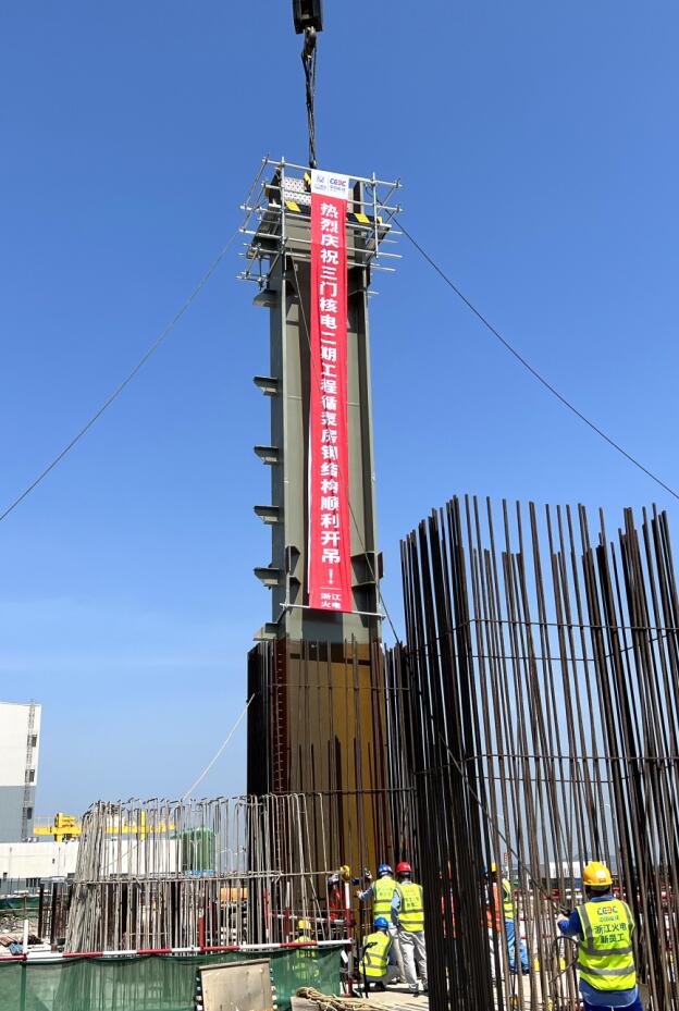本網(wǎng)訊 7月27日上午,中國能建設(shè)計(jì)參建的三門核電二期工程循泵房鋼結(jié)構(gòu)正式開吊。