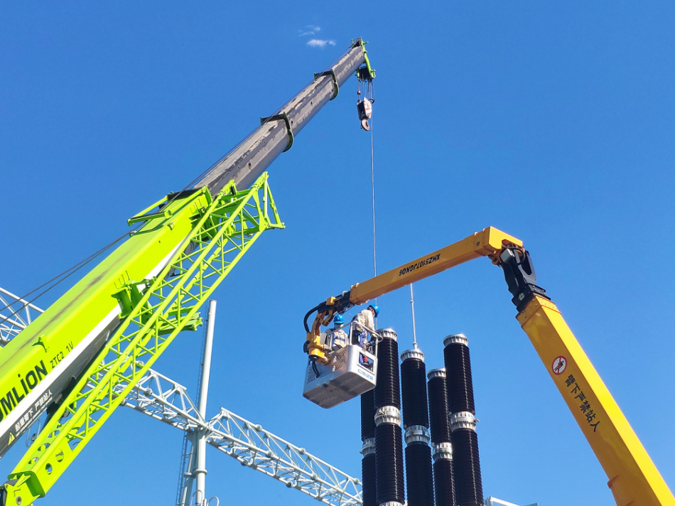 國(guó)網(wǎng)北京電力員工在通州北500千伏變電站安裝串聯(lián)電抗器。