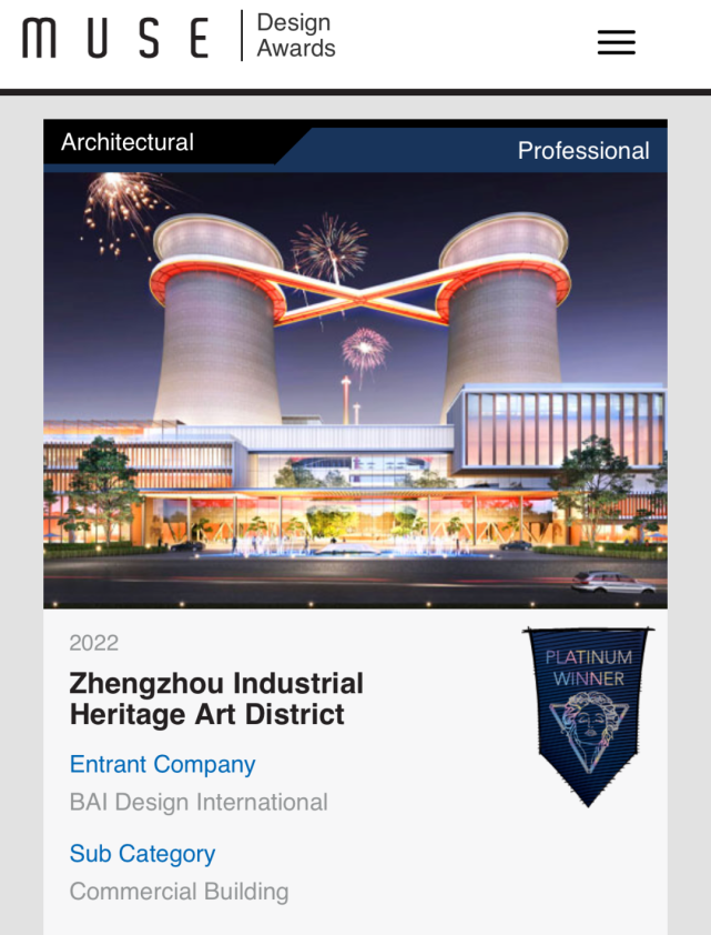近日,2022繆斯設(shè)計(jì)獎 MUSE Design Awards 揭曉獲獎名單,由英國杰典國際建筑設(shè)計(jì)的鄭州沙口壹號藝術(shù)園區(qū) Zhengzhou Industrial Heritage Art District 項(xiàng)目,從來自全球38個國家/地區(qū)的6000多份參賽作品中脫穎而出,斬獲2022繆斯設(shè)計(jì)獎 MUSE Design Awards 建筑-商業(yè)綜合體類鉑金獎!誰也想不到這個藝術(shù)園區(qū)的前身是鄭州興隆鋪熱電廠。