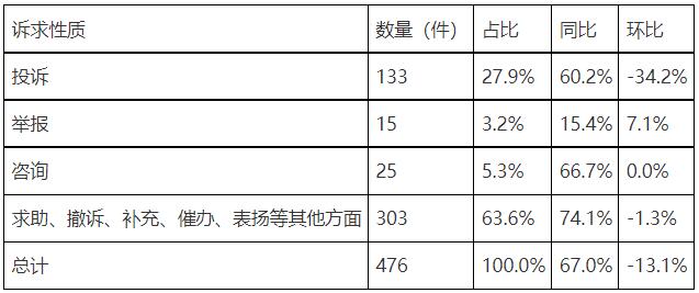 表1 2022年9月份工單按訴求性質(zhì)分類(lèi)情況