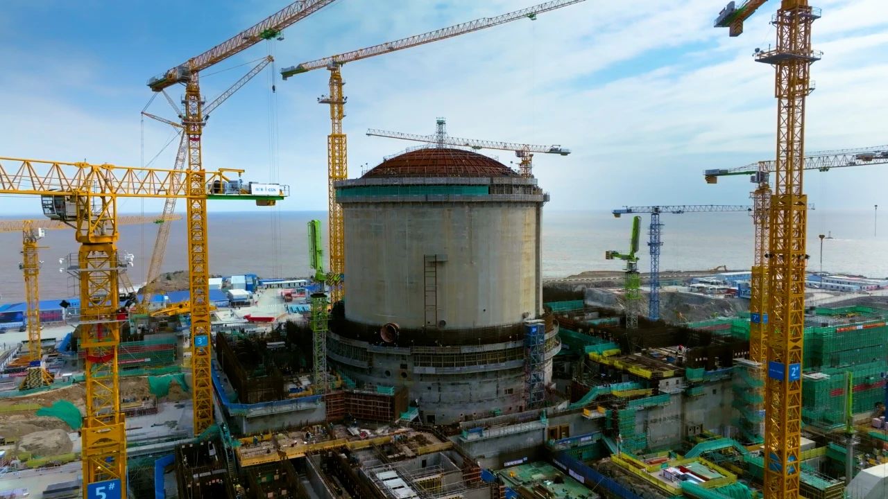 目前,浙江三澳核電項(xiàng)目一期工程設(shè)計(jì)基本完成、設(shè)備采購(gòu)?fù)瓿?9%,工程建設(shè)進(jìn)入高峰期。1號(hào)機(jī)組于2022年5月底實(shí)現(xiàn)核島安裝開(kāi)工,11月3日完成核島穹頂?shù)跹b,從土建施工階段全面轉(zhuǎn)入設(shè)備安裝階段。目前,土建方面,正開(kāi)展核島內(nèi)殼環(huán)梁D1層、外殼第9層、常規(guī)島汽輪機(jī)廠房施工;設(shè)備安裝方面,正在進(jìn)行支架安裝,逐漸開(kāi)展設(shè)備引入工作。2號(hào)機(jī)組常規(guī)島、泵站均已正式開(kāi)工,核島鋼襯里筒體5層焊接完成,正在進(jìn)行內(nèi)殼5層、外殼2層及廊道施工。在工程建設(shè)穩(wěn)步推進(jìn)的同時(shí),項(xiàng)目在組織運(yùn)作、人員準(zhǔn)備、工程參與、技術(shù)準(zhǔn)備等領(lǐng)域重點(diǎn)發(fā)力,責(zé)任前移,高效推進(jìn)生產(chǎn)準(zhǔn)備。