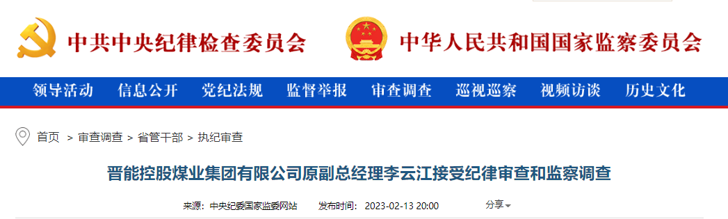 中央紀委國家監(jiān)委網(wǎng)站2月13日消息, 據(jù)山西省紀委監(jiān)委消息:晉能控股煤業(yè)集團有限公司原副總經(jīng)理李云江涉嫌嚴重違紀違法,目前正接受山西省紀委監(jiān)委紀律審查和監(jiān)察調(diào)查。