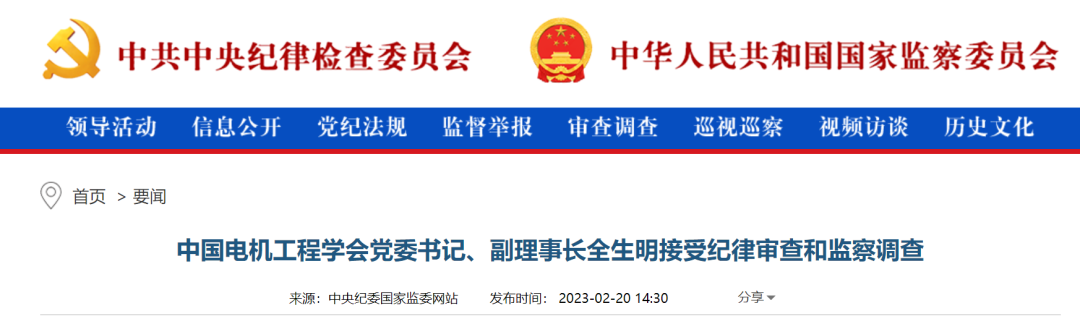 中央紀(jì)委國(guó)家監(jiān)委網(wǎng)站2月20日消息,據(jù)中央紀(jì)委國(guó)家監(jiān)委駐國(guó)家電網(wǎng)有限公司紀(jì)檢監(jiān)察組、安徽省紀(jì)委監(jiān)委消息:中國(guó)電機(jī)工程學(xué)會(huì)黨委書(shū)記、副理事長(zhǎng)全生明涉嫌嚴(yán)重違紀(jì)違法,目前正接受中央紀(jì)委國(guó)家監(jiān)委駐國(guó)家電網(wǎng)有限公司紀(jì)檢監(jiān)察組和安徽省馬鞍山市監(jiān)察委員會(huì)聯(lián)合審查調(diào)查。