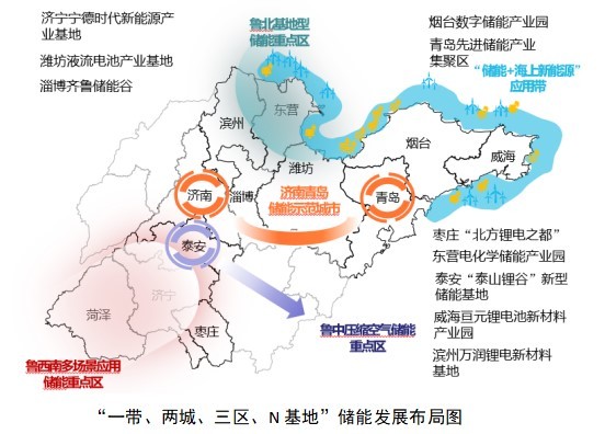2022年底,《山東省新型儲能工程發(fā)展行動方案》正式印發(fā)。其中明確,山東將著力構(gòu)建“一帶、兩城、三區(qū)、N基地”發(fā)展格局,包括:打造“儲能+海上新能源”應用帶,建設(shè)濟南、青島儲能示范城市,構(gòu)建魯北、魯中、魯西多個儲能重點區(qū),培育一批特色鮮明的產(chǎn)業(yè)基地,實現(xiàn)新型儲能由商業(yè)化初期向規(guī)?;l(fā)展轉(zhuǎn)變。