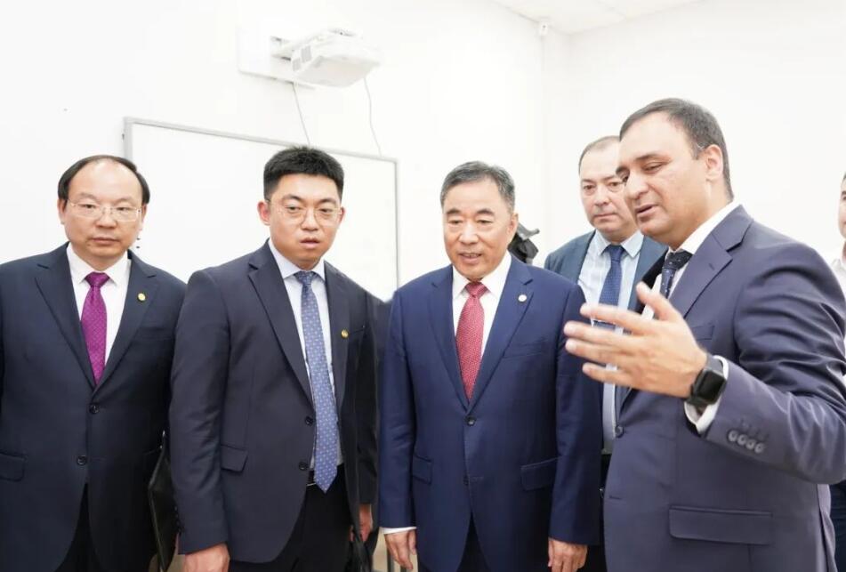 宋海良一行參觀了烏茲別克斯坦國(guó)立交通大學(xué)校史博物館、研學(xué)實(shí)驗(yàn)室,同學(xué)校師生人員進(jìn)行交流,對(duì)中國(guó)能建“魯班工坊”課堂開展情況給予了高度肯定。
