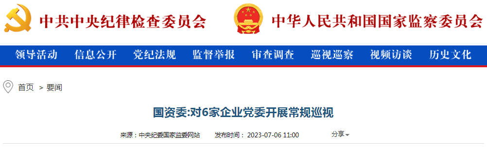 中央紀(jì)委國家監(jiān)委網(wǎng)站7月6日消息,經(jīng)國資委黨委批準(zhǔn),2023年第一輪巡視對中國化學(xué)工程集團(tuán)有限公司、中國鐵路工程集團(tuán)有限公司、中國鐵道建筑集團(tuán)有限公司、中國交通建設(shè)集團(tuán)有限公司、中國電力建設(shè)集團(tuán)有限公司、中國能源建設(shè)集團(tuán)有限公司等6家企業(yè)黨委開展常規(guī)巡視。