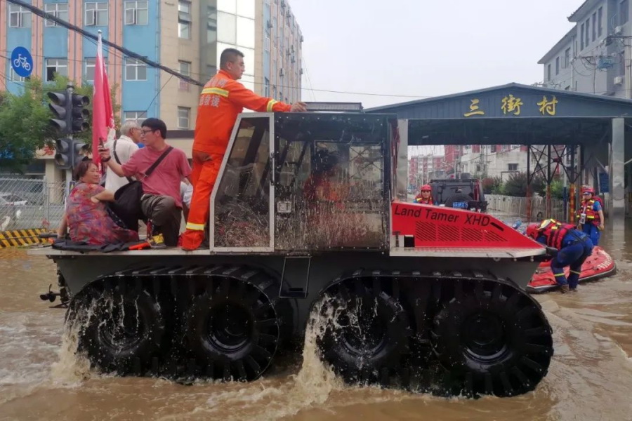 國(guó)網(wǎng)北京電力工程公司應(yīng)急救援隊(duì)隊(duì)員在搶修途中幫助受困群眾轉(zhuǎn)移