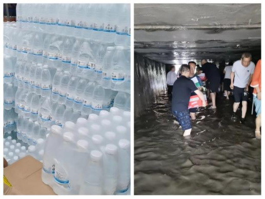 中化局物資籌措隊(duì)在涿州市分散采購(gòu)礦泉水、干糧、充電寶、蠟燭等急需物資,密切關(guān)注交通運(yùn)輸路況信息,第一時(shí)間打通物資通道。黨員干部和志愿者組成“人鏈”,手抱肩扛運(yùn)送保障物資,搶時(shí)間、不停歇,保證基地群眾特別是離退休老職工家庭飲用水。