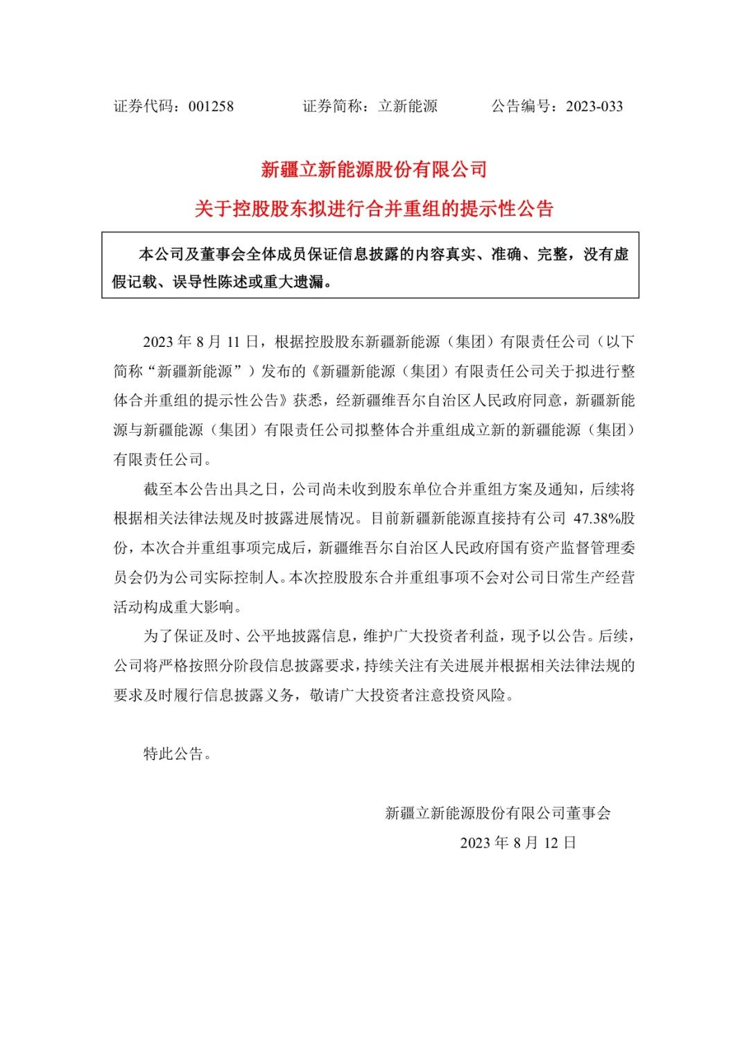 立新能源稱,截至公告出具之日,公司尚未收到股東單位合并重組方案及通知,后續(xù)將根據(jù)相關(guān)法律法規(guī)及時披露進展情況。根據(jù)新疆能源(集團)有限責任公司消息: