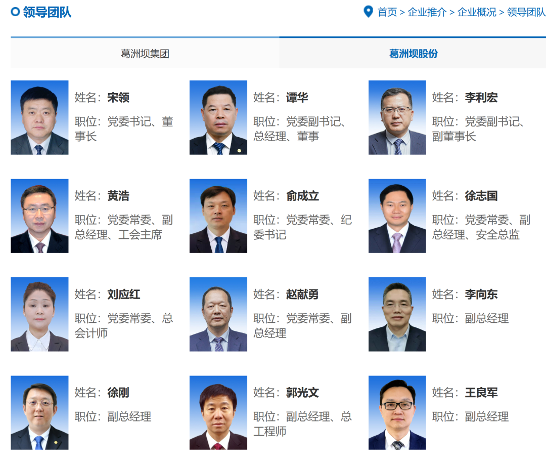 截至3月6日,中國(guó)葛洲壩集團(tuán)官網(wǎng)領(lǐng)導(dǎo)團(tuán)隊(duì)專(zhuān)欄顯示,葛洲壩集團(tuán)領(lǐng)導(dǎo)如下: