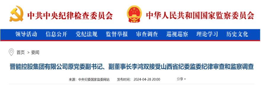 中央紀(jì)委國家監(jiān)委網(wǎng)站4月28日消息,據(jù)山西省紀(jì)委監(jiān)委消息:晉能控股集團有限公司原黨委副書記、副董事長李鴻雙涉嫌嚴重違紀(jì)違法,目前正接受山西省紀(jì)委監(jiān)委紀(jì)律審查和監(jiān)察調(diào)查。