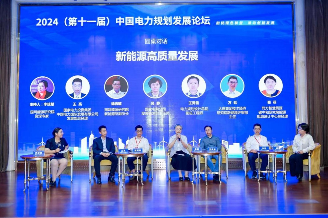 論壇同期舉辦了兩場圓桌對話。新能源高質(zhì)量發(fā)展圓桌對話由國網(wǎng)能源研究院資深專家李瓊慧主持,國網(wǎng)發(fā)展策劃部主任師吳靜,電力規(guī)劃設(shè)計總院副總工程師王霽雪,南網(wǎng)能源研究院新能源所副所長楊再敏,大唐集團(tuán)技術(shù)經(jīng)濟(jì)研究院新能源評審部主任方廷,國家電力投資集團(tuán)中國電力國際發(fā)展有限公司發(fā)展部總經(jīng)理王亮,同方智慧能源碳中和研究院能源規(guī)劃設(shè)計中心總經(jīng)理秦菲,共同圍繞當(dāng)前新能源發(fā)展面臨的機(jī)遇和挑戰(zhàn),結(jié)合自己的業(yè)務(wù)實際,就如何實現(xiàn)高質(zhì)量發(fā)展進(jìn)行了互動交流。