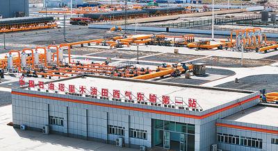 位于新疆維吾爾自治區(qū)巴音郭楞蒙古自治州輪臺(tái)縣境內(nèi)的中國(guó)石油塔里木油田公司西氣東輸?shù)谝徽尽?新華社記者 王 鵬攝