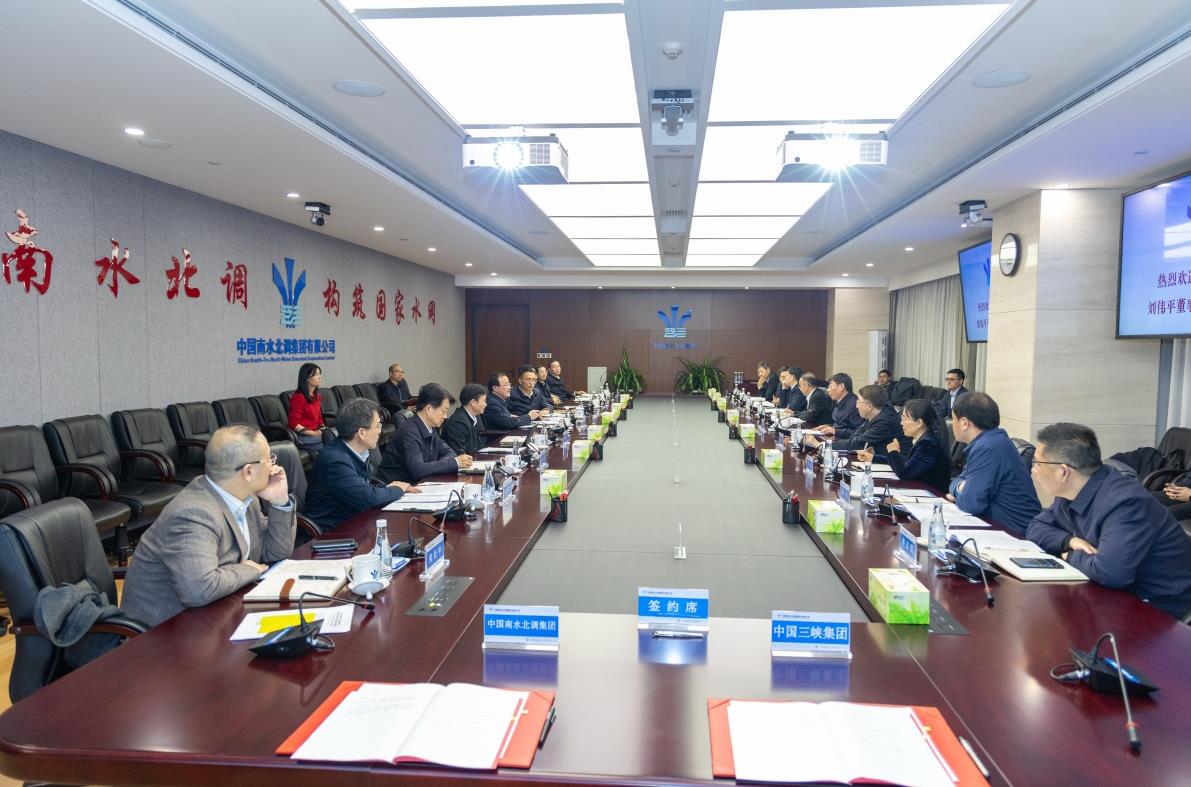 劉偉平回顧了雙方合作發(fā)展歷程,介紹了三峽集團改革發(fā)展等情況,對中國南水北調(diào)集團給予的支持和幫助表示感謝。劉偉平表示,三峽集團和中國南水北調(diào)集團都承擔保障國家水安全等國家重大戰(zhàn)略使命,雙方主責主業(yè)高度契合,業(yè)務互補性強,合作空間廣闊。希望雙方以此次簽約為契機,在水資源優(yōu)化配置、清潔能源開發(fā)、生態(tài)環(huán)保、科技創(chuàng)新和人才交流等領(lǐng)域進一步深化合作,為服務經(jīng)濟社會高質(zhì)量發(fā)展作出新的更大貢獻。