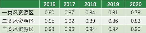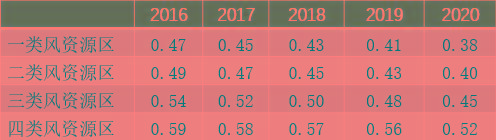 表1: 2016-2020年陸上風(fēng)電上網(wǎng)標(biāo)桿電價(jià)水平逐年下調(diào)幅度(單位:元/千瓦時(shí))