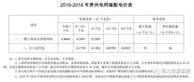 2016年3月7日,國家發(fā)改委批復了2016年-2018年貴州電網(wǎng)的輸配電價(具體如下表)。