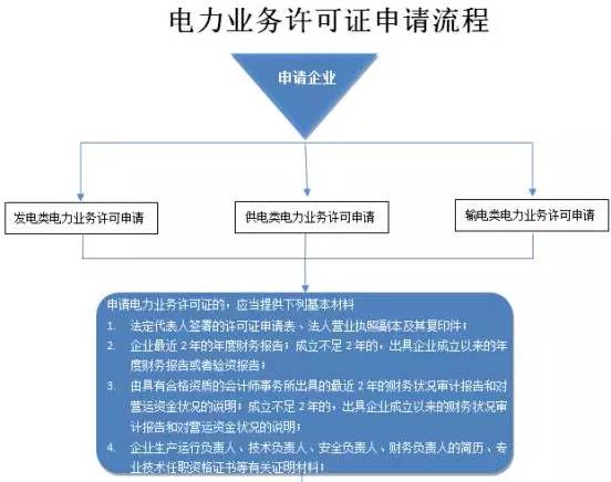 在中華人民共和國(guó)境內(nèi)從事電力業(yè)務(wù),應(yīng)當(dāng)取得電力業(yè)務(wù)許可證。除國(guó)家能源局規(guī)定的特殊情況外,任何單位或者個(gè)人未取得電力業(yè)務(wù)許可證,不得從事電力業(yè)務(wù)。本指南所稱(chēng)電力業(yè)務(wù),是指發(fā)電、輸電、供電業(yè)務(wù)。其中,供電業(yè)務(wù)包括配電業(yè)務(wù)和售電業(yè)務(wù)。