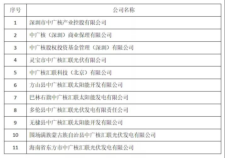 二、經(jīng)檢索查詢發(fā)現(xiàn),目前有深圳市中廣核產(chǎn)業(yè)控股有限公司、中廣核(深圳)商業(yè)保理有限公司等11家公司(附表)冒名使用“中廣核”字號或商標(biāo),對我集團品牌造成嚴重侵權(quán)。