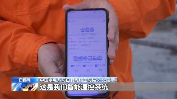 中國水電八局白鶴灘施工局局長 張建清:這是我們智能溫控系統(tǒng),及時把倉面的溫度和冷卻水管的溫度反映到我們后臺平臺上以后,通過預(yù)先設(shè)定的溫控策略,然后對通水溫度以及通水的流量進行調(diào)整,確?;炷羶?nèi)部最高溫度和降溫速度完全按設(shè)定目標(biāo)進行,做到分毫不差。