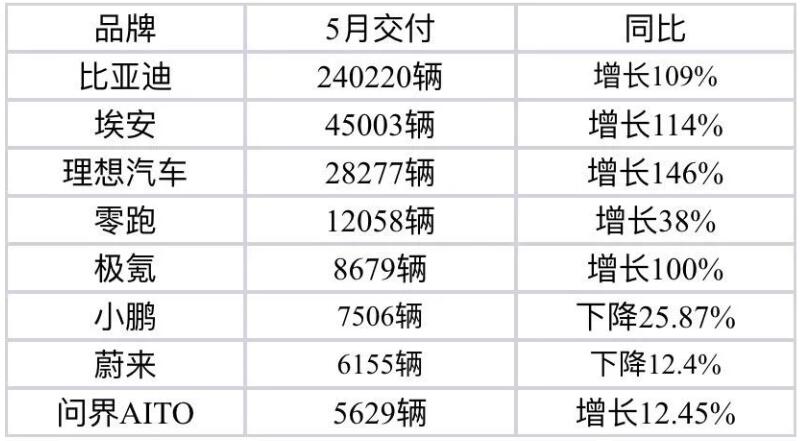 6月1日,新能源車企陸續(xù)交出5月銷售成績單。