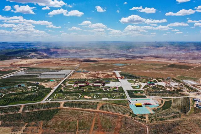 這是位于準(zhǔn)格爾旗的大唐龍王溝煤礦(7月8日攝,無人機(jī)照片)。