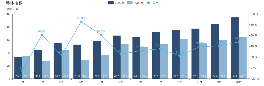 剛剛過去的2023年,軌跡明顯改變,增速放緩,新能源汽車產銷分別完成958.7萬輛和949.5萬輛,同比分別增長35.8%、37.9%。