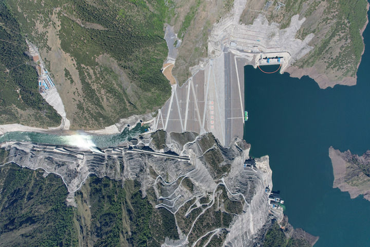 這是2024年6月29日拍攝的我國(guó)海拔最高的百萬(wàn)千瓦級(jí)水電站——兩河口水電站。新華社記者 薛晨 攝