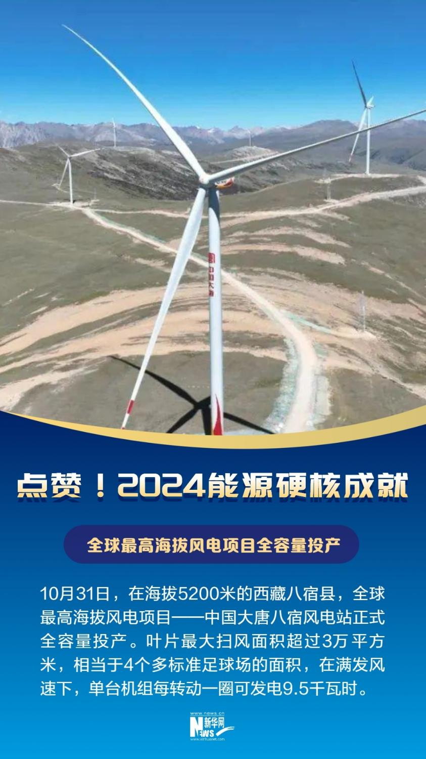 10月31日,在海拔5200米的西藏昌都市八宿縣,全球最高海拔風(fēng)電項(xiàng)目——中國(guó)大唐八宿風(fēng)電站正式全容量投產(chǎn)。項(xiàng)目共安裝20臺(tái)風(fēng)電機(jī)組,風(fēng)機(jī)輪轂中心高度110米,葉輪直徑195米,葉片最大掃風(fēng)面積超過3萬平方米,相當(dāng)于4個(gè)多標(biāo)準(zhǔn)足球場(chǎng)的面積,在滿發(fā)風(fēng)速下,單臺(tái)機(jī)組每轉(zhuǎn)動(dòng)一圈可發(fā)電9.5千瓦時(shí)。