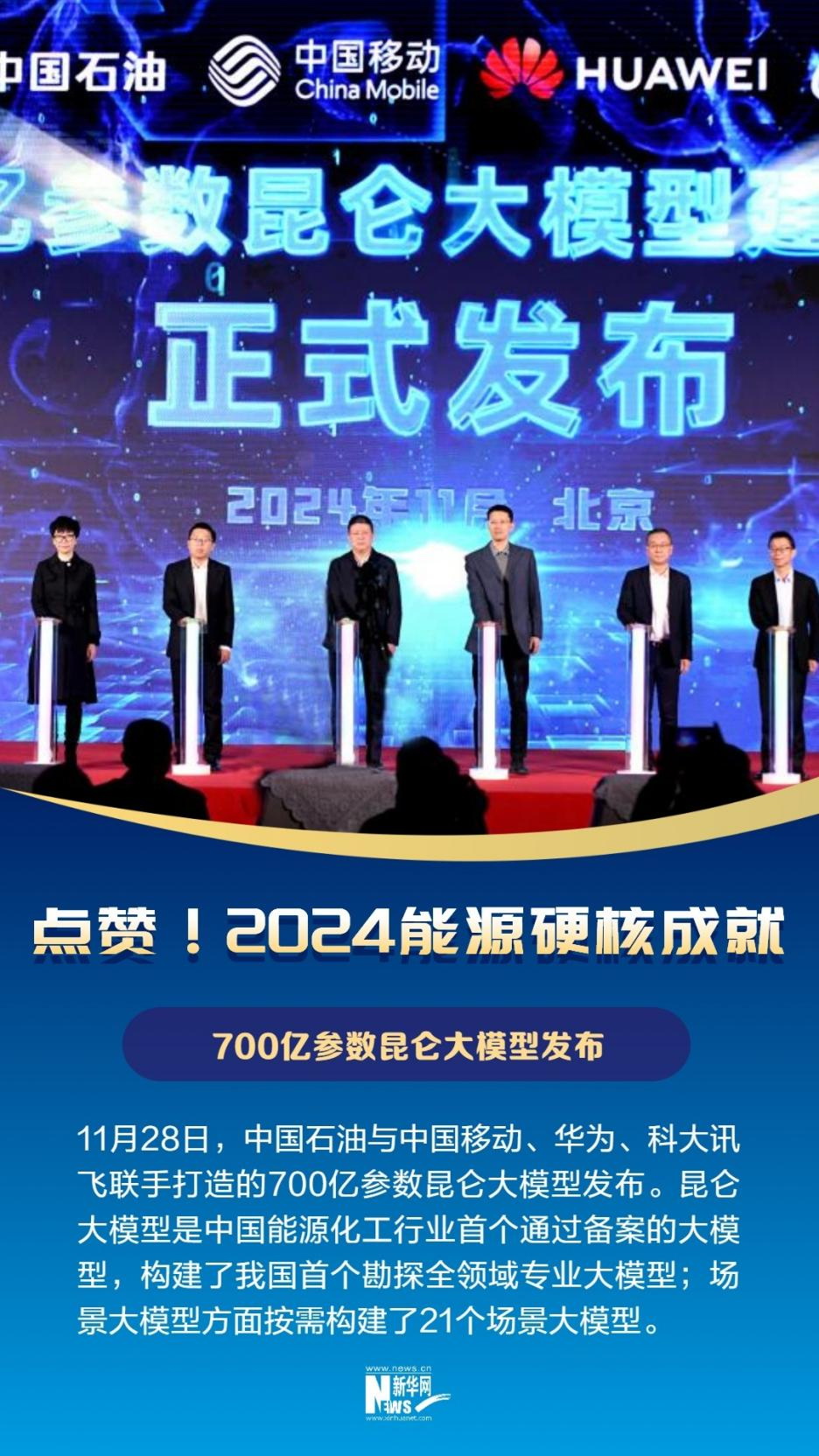 11月28日,中國(guó)石油與中國(guó)移動(dòng)、華為、科大訊飛聯(lián)手打造的700億參數(shù)昆侖大模型發(fā)布。昆侖大模型是中國(guó)能源化工行業(yè)首個(gè)通過備案的大模型,于2024年5月正式啟動(dòng)建設(shè),3個(gè)月后參數(shù)量級(jí)達(dá)到330億。此次發(fā)布的昆侖大模型,在行業(yè)大模型方面參數(shù)從330億升級(jí)到700億,自然語言處理、語音視覺識(shí)別、多模態(tài)交互、科學(xué)計(jì)算等專業(yè)能力大幅提升,視覺大模型訓(xùn)練數(shù)據(jù)進(jìn)一步豐富;在專業(yè)大模型方面構(gòu)建了我國(guó)首個(gè)勘探全領(lǐng)域?qū)I(yè)大模型;場(chǎng)景大模型方面按需構(gòu)建了21個(gè)場(chǎng)景大模型。