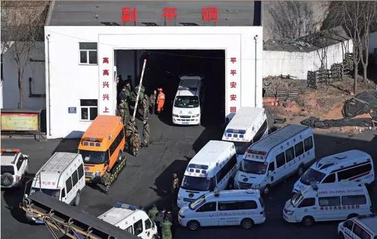 百吉礦業(yè)李家溝煤礦,位于生產(chǎn)調(diào)度中心大樓旁的“副平硐”,礦工們平時就是從此處進入礦井中作業(yè)。1 月13日, 事故發(fā)生后的井口,停滿了救援車輛。
