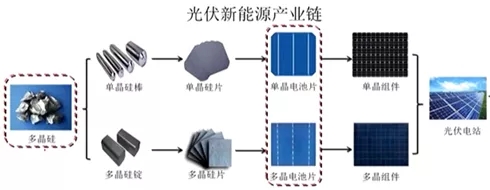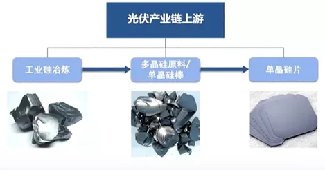光伏產(chǎn)業(yè)鏈相對(duì)簡(jiǎn)單,產(chǎn)業(yè)鏈上游主要是將半導(dǎo)體材料硅提煉成晶硅,中游廠商再將晶硅制作成電池片并生產(chǎn)相關(guān)的光伏組件,下游廠商則將電池片組裝成完整的發(fā)電系統(tǒng)并進(jìn)行維護(hù)和管理。