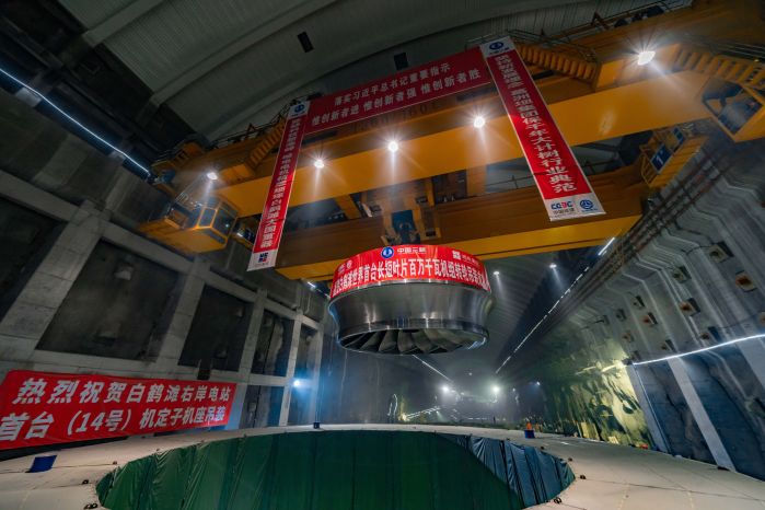 2022年5月20日,白鶴灘水電站9號(hào)機(jī)組總裝工作完成,進(jìn)入調(diào)試階段,標(biāo)志著白鶴灘水電站16臺(tái)百萬(wàn)千瓦水輪發(fā)電機(jī)組總裝工作全部完成。