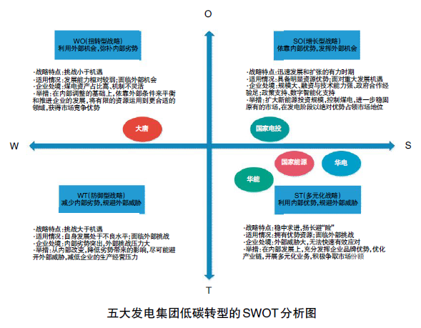 基于上述分析,結(jié)合五大發(fā)電集團的發(fā)展特點總結(jié)出如圖所示的SWOT分析矩陣與轉(zhuǎn)型對策。