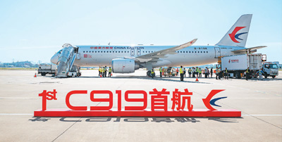 順利起飛、平穩(wěn)落地、跨過水門……5月28日,中國自主研發(fā)的大型客機(jī)C919成功完成首次商業(yè)載客飛行。在民用航空領(lǐng)域,大型客機(jī)被譽(yù)為“現(xiàn)代制造業(yè)的明珠”。其制造能力直接反映一個國家的工業(yè)水平。C919的一飛沖天讓中國人的“大飛機(jī)夢”成為現(xiàn)實。