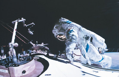 12月21日在北京航天飛行控制中心拍攝的神舟十七號航天員唐勝杰開展艙外操作的畫面。(新華社發(fā))