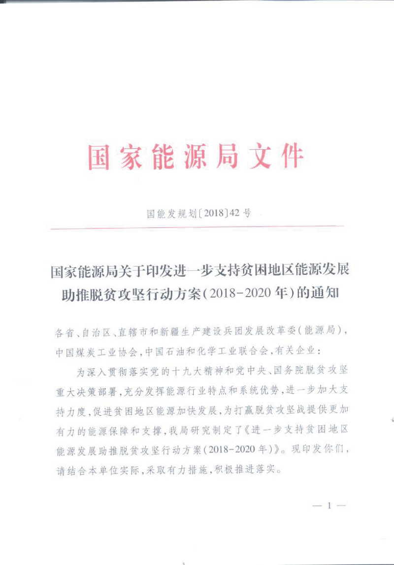 國家能源局關(guān)于印發(fā)進一步支持貧困地區(qū)能源發(fā)展助推脫貧攻堅行動方案(2018-2020年)的通知
