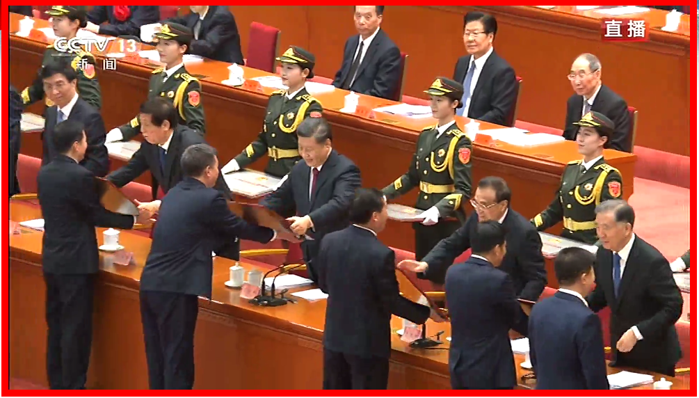 習(xí)近平等為受表彰的全國脫貧攻堅(jiān)先進(jìn)個(gè)人和先進(jìn)集體代表頒獎(jiǎng)。