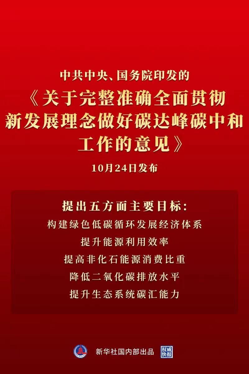 10月24日,中共中央 國(guó)務(wù)院正式發(fā)布《關(guān)于完整準(zhǔn)確全面貫徹新發(fā)展理念做好碳達(dá)峰碳中和工作的意見(jiàn)》,內(nèi)容極其豐富。文件強(qiáng)調(diào):