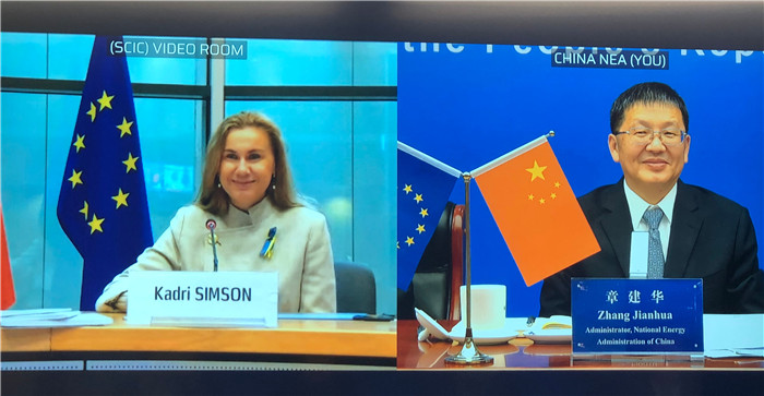 本網(wǎng)訊 3月31日,中國(guó)國(guó)家能源局局長(zhǎng)章建華在北京通過(guò)視頻形式與歐盟能源委員西姆森共同主持召開(kāi)第十次中歐能源對(duì)話。