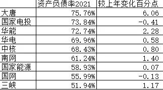 發(fā)電央企加大轉(zhuǎn)型力度,籌資投入新能源,加上去年煤電巨虧,資產(chǎn)負(fù)債率基本均上升,各大集團(tuán)間,2020年國(guó)家電投資產(chǎn)負(fù)債率最高,2021年大唐因?yàn)榫尢潓?dǎo)致凈資產(chǎn)減少,資產(chǎn)負(fù)債率上升為第一位。