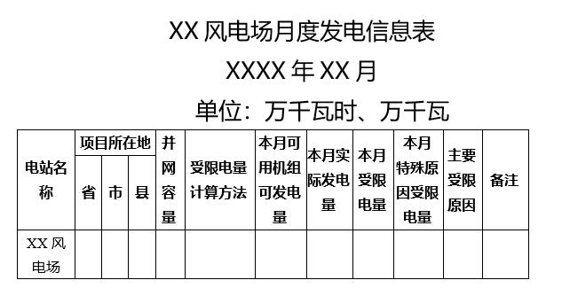 第十一條 省級電網(wǎng)企業(yè)對其調(diào)度機(jī)構(gòu)調(diào)度范圍內(nèi)風(fēng)電場每月報(bào)送數(shù)據(jù)進(jìn)行匯總、整理、分析和校核,在每月15日前向國家能源局當(dāng)?shù)嘏沙鰴C(jī)構(gòu)報(bào)送各省(區(qū)、市)風(fēng)電場月度發(fā)電信息報(bào)表(附件2),同時在國家可再生能源信息管理平臺和全國新能源電力消納監(jiān)測預(yù)警平臺填報(bào),并向其調(diào)度機(jī)構(gòu)調(diào)度范圍內(nèi)各風(fēng)電場披露。