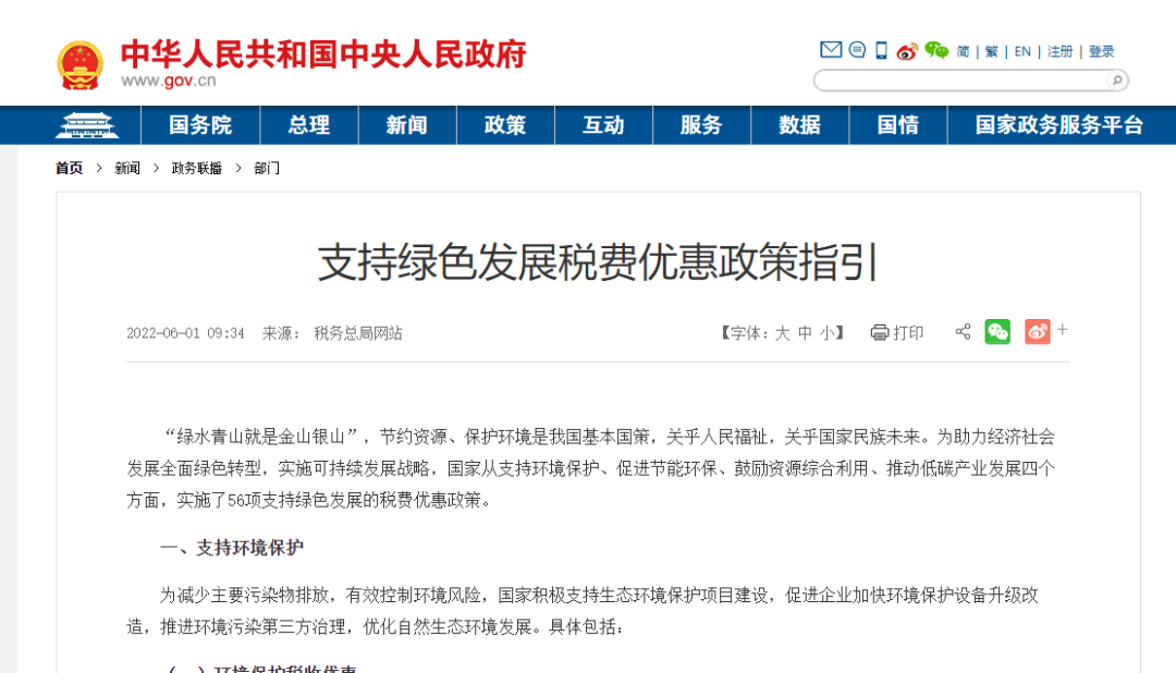 為著眼于國家碳達峰碳中和戰(zhàn)略部署,充分體現(xiàn)稅收對市場主體綠色低碳發(fā)展的促進和激勵作用,國家稅務總局日前發(fā)布《支持綠色發(fā)展稅費優(yōu)惠政策指引》,從支持環(huán)境保護、促進節(jié)能環(huán)保、鼓勵資源綜合利用、推動低碳產(chǎn)業(yè)發(fā)展四個方面,實施了56項支持綠色發(fā)展的稅費優(yōu)惠政策。