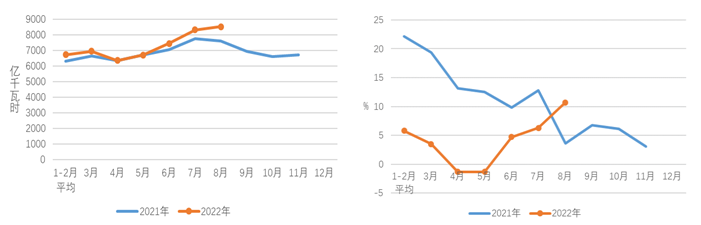 1-8月份,第三產(chǎn)業(yè)用電量同比增長6.1%。其中,批發(fā)和零售業(yè)、租賃和商務服務業(yè)、房地產(chǎn)業(yè)、公共服務及管理組織、住宿和餐飲業(yè)同比增長超過5%,分別為8.5%、7.9%、6.8%、6.8%和5.7%。