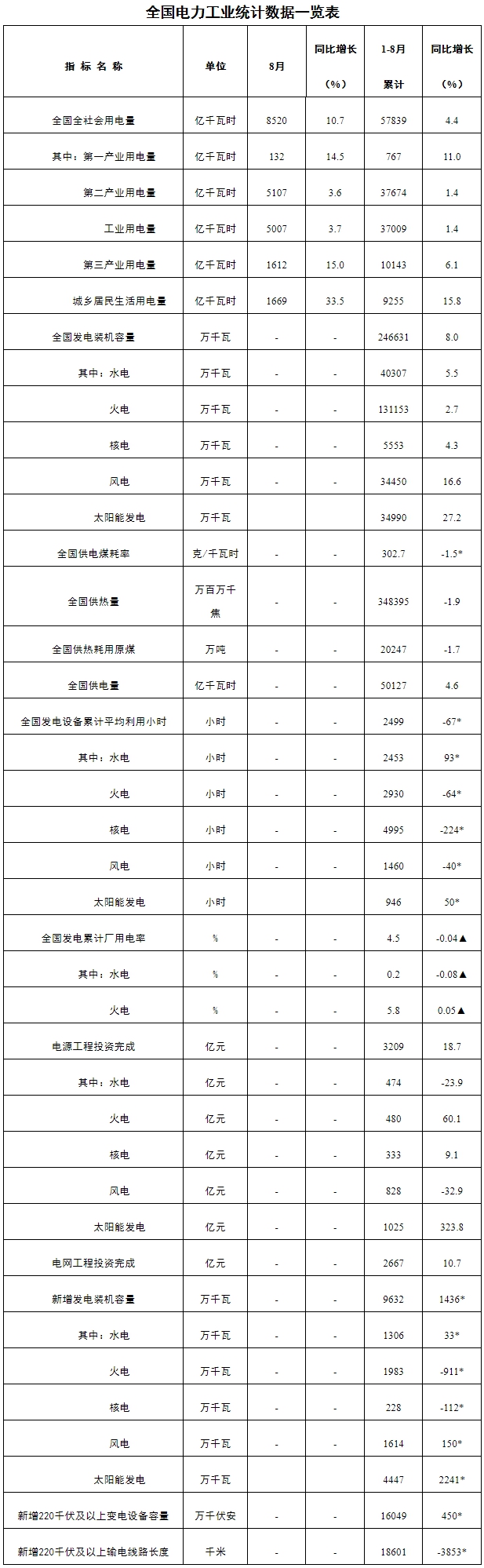 注:1.全社會用電量為全口徑數(shù)據(jù),全國供電量為調(diào)度口徑數(shù)據(jù)。2.“同比增長”列中,標(biāo)*的指標(biāo)為絕對量;標(biāo)▲的指標(biāo)為百分點。