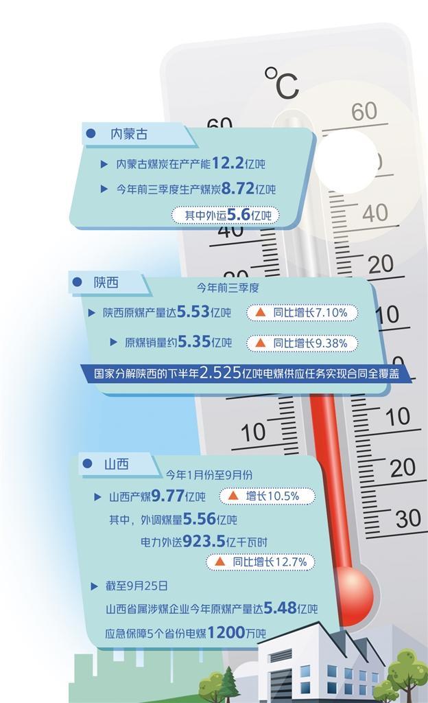 陜西能源生產(chǎn)保持穩(wěn)定、供應(yīng)安全可靠。今年前三季度,陜西省原煤產(chǎn)量達(dá)5.53億噸,同比增長(zhǎng)7.10%;原煤銷量約5.35億噸,同比增長(zhǎng)9.38%。陜西省下半年約3310萬噸電煤需求量已足額簽訂,國(guó)家分解陜西的下半年2.525億噸電煤供應(yīng)任務(wù)實(shí)現(xiàn)合同全覆蓋。