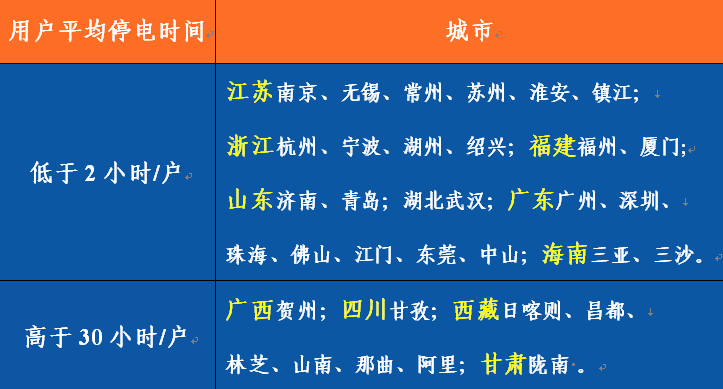 31個(gè)省級行政區(qū)中,用戶平均停電時(shí)間同比降幅超過10%的有24個(gè),前三位的新疆、北京、安徽減少幅度超過45%。內(nèi)蒙古、黑龍江的平均供電可靠率同比下降。