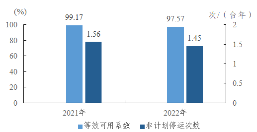 圖2 2021—2022年燃煤機(jī)組主要運(yùn)行可靠性指標(biāo)
