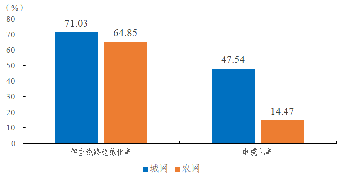2022年,納入電力可靠性統(tǒng)計(jì)的10千伏用戶1241.01萬戶,用戶總?cè)萘?8.90億千伏安。城網(wǎng)、農(nóng)網(wǎng)架空線路絕緣化率分別為71.03%、64.85%,城網(wǎng)、農(nóng)網(wǎng)電纜化率分別為47.54%、14.47%。